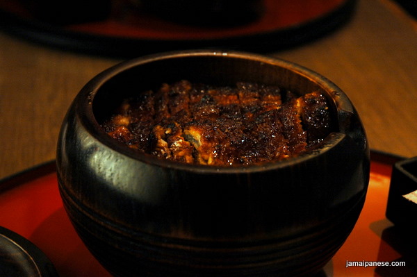 While walking towards the restaurant I noticed a snake-like design on the glass at which point I realized that I was about to eat something I can only describe as um, interesting. First thing that struck me was the wonderful scent in the air, then I realized that the place was quite crowded as we joined a waiting list of persons waiting on a table. Our time soon came and as we were escorted to our table I couldn’t help but be visibly in awe at the design and layout of the restaurant which by the way is called Hitsumabushi at Shirakawa. A few minutes later our Hitsumabushi arrived and I nervously took a deep breath and looked to my Japanese friend for guidance and instruction.